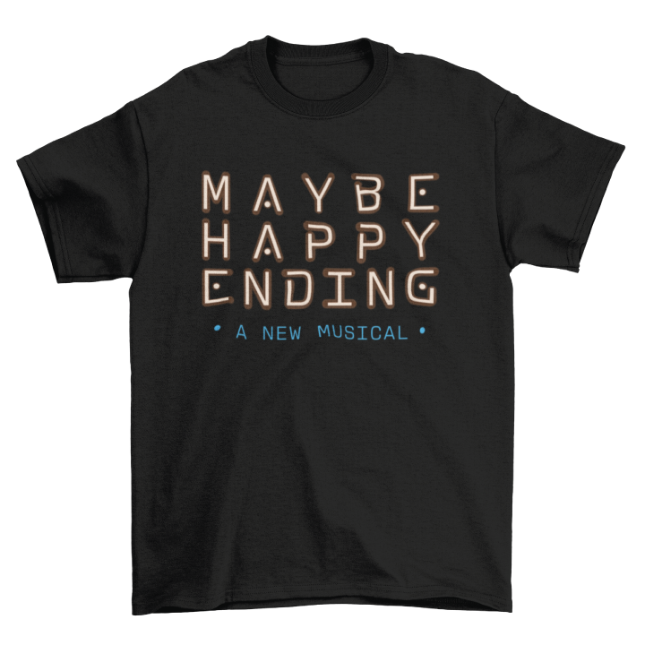 a soft cotton black t-shirt featuring the logo from Maybe Happy Ending on Broadway.